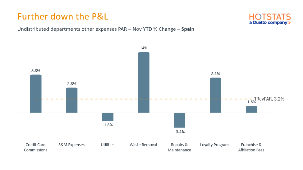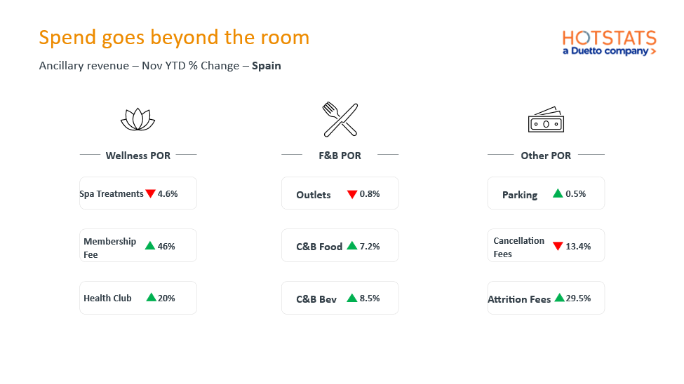 Looking beyond room revenue, ancillary spend in Spain shows a more nuanced picture.