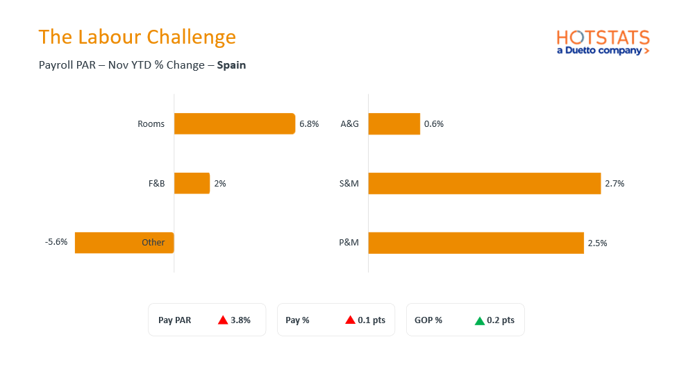 Total labour costs are up almost 5.0% across Europe, while in Spain they have increased by 4.0%, directly affecting GOP performance.